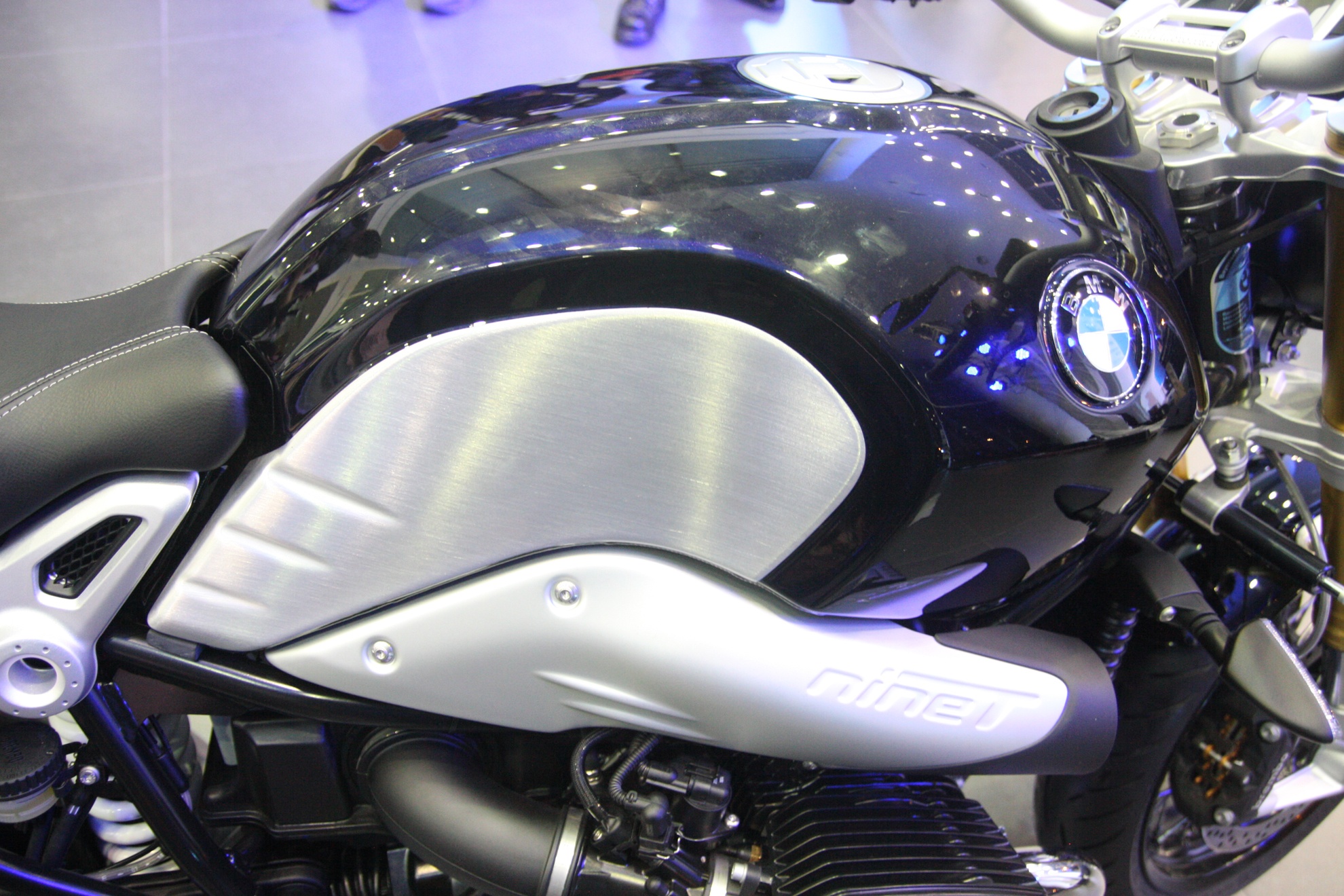 | BMW Motorrad trình làng R nineT năm 2014. Xe có kích thước dài, rộng, cao lần lượt là 2.220 x 890 x 1.265 mm, chiều dài cơ sở 1.476 mm. Chiều cao yên xe 785 mm. |