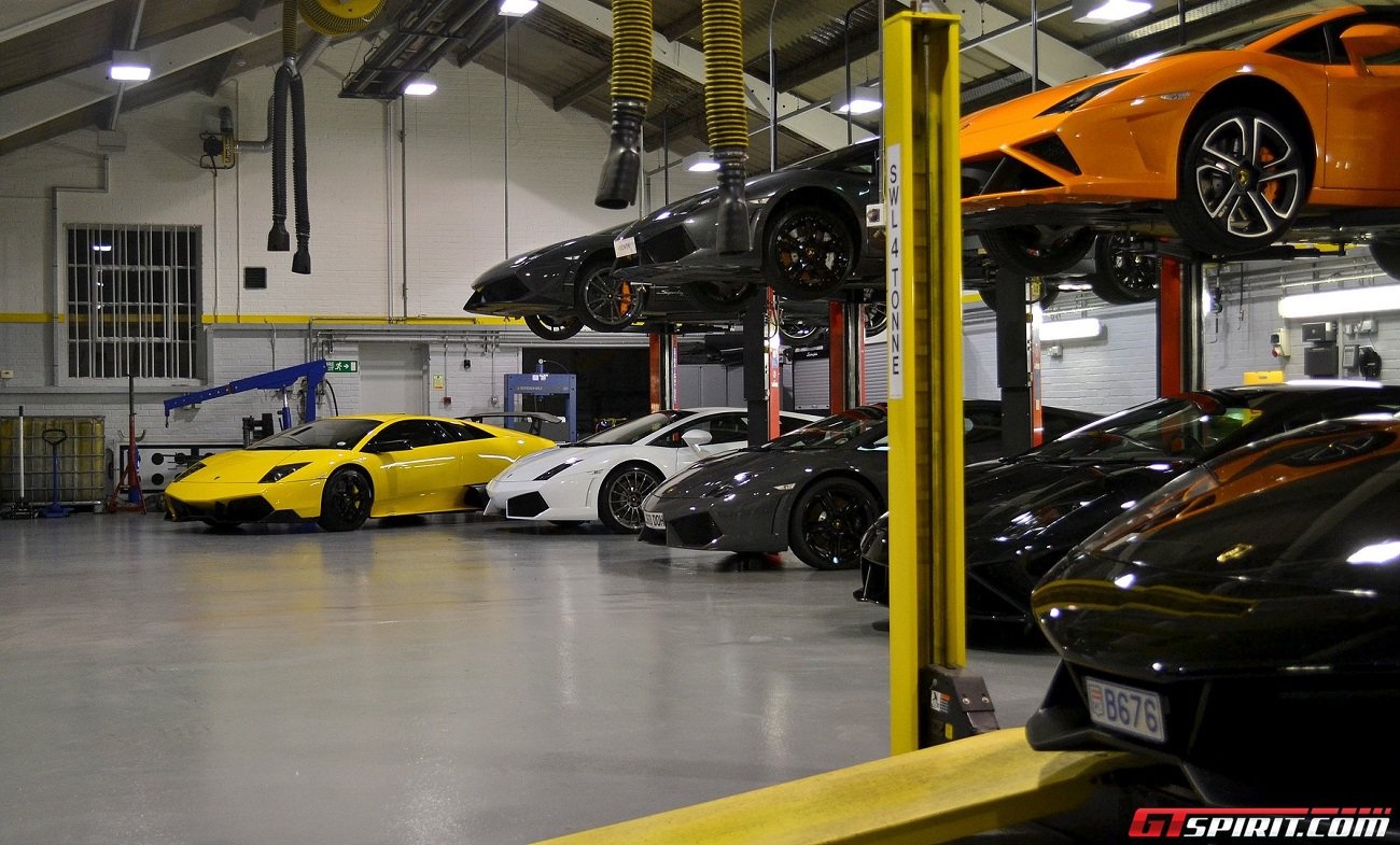 | Một garage tràn ngập các siêu xe Lamborghini, trong đó có cả phiên bản Gallardo 2013, siêu xe đã dừng sản xuất của hãng xe Ý. Ảnh: GT spirit. |