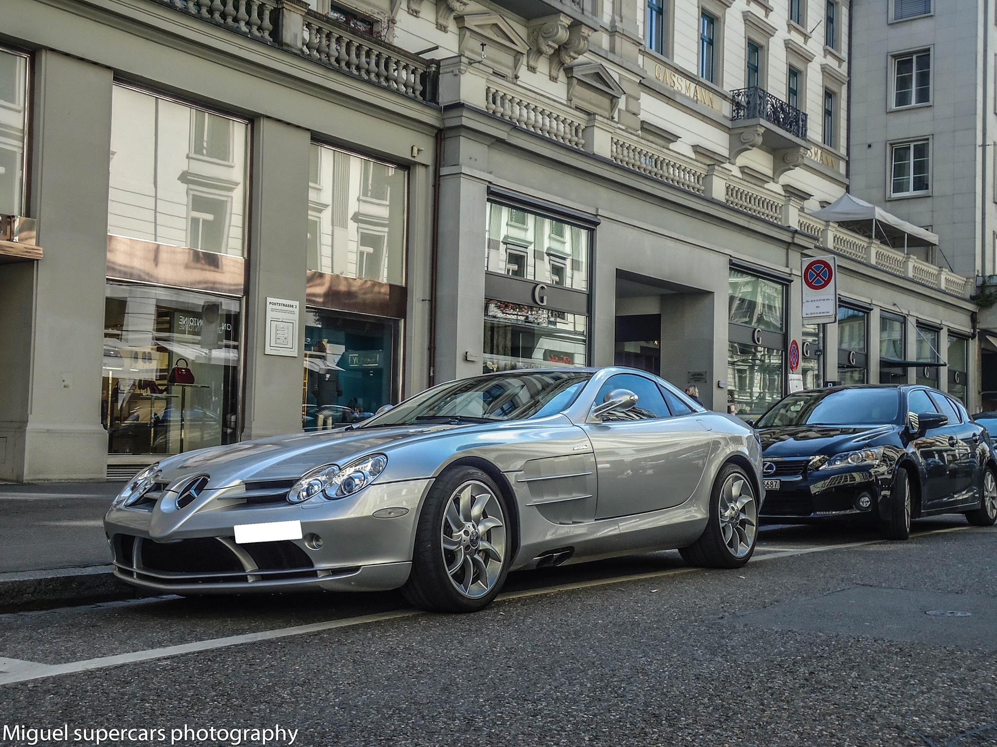 | Mũi tên bạc Mercedes-Benz SLR McLaren được trang bị động cơ V8 5,4 lít, siêu nạp, công suất 626 mã lực tại 6.500 vòng/phút và mô-men xoắn cực đại 780 Nm tại vòng tua từ 3.250 - 5.000 vòng/phút, có khả năng tăng tốc 0-100 km/h trong 3,4 giây. Ảnh: Miguel. |