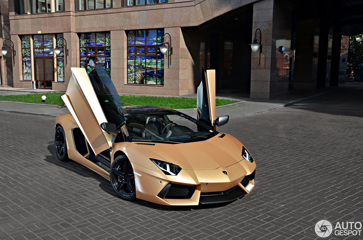 | Lamborghini Aventador trong bộ cánh màu vàng rất độc đáo. Đây là sản phẩm của hãng độ nổi tiếng Oakley Design. Ảnh: Autogespot. |