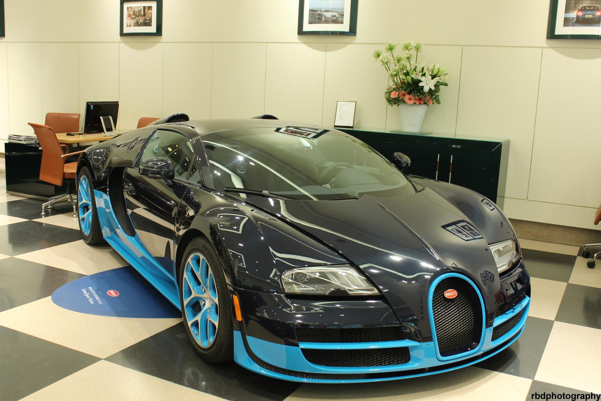 | Siêu xe Bugatti Veyron trong một showroom chờ tìm chủ. Siêu xe đến từ Pháp là một trong những mẫu xe sở hữu tốc độ nhanh nhất thế giới. Ảnh: Rbd. |