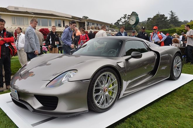 | Siêu xe Porsche 918 Spyder giá 850.000 USD, xuất hiện dưới dạng tiền sản xuất tại lễ hội xe Pebble Beach Concours. |