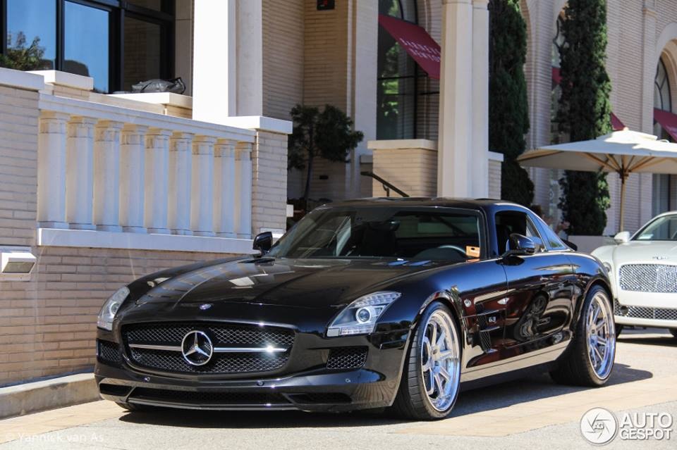 | Mercedes-Benz SLS AMG màu đen ở Beverly Hills, Mỹ. |