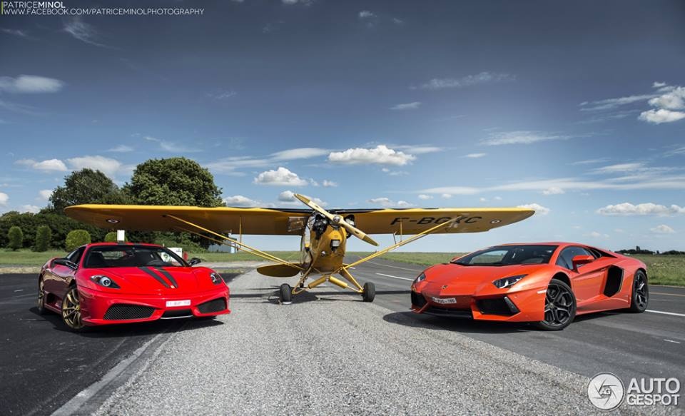| Ferrari 430 Scuderia và Lamborghini Aventador LP700-4 ở Cambrais, Pháp. |