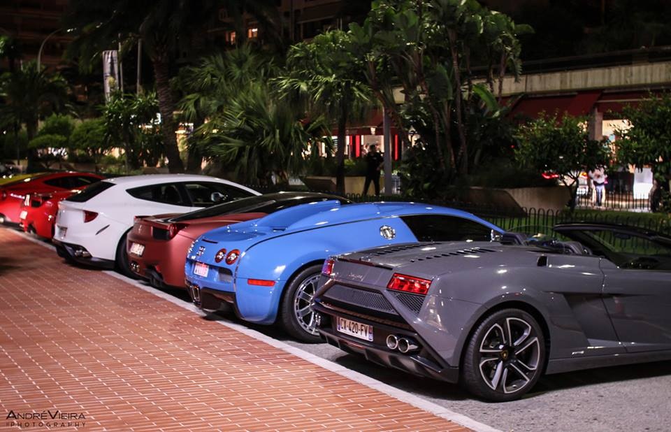 Dàn siêu xe Lamborghi Gallardo, Bugatti Veyron và một số siêu xe Ferrari, bao gồm Ferrari FF, F12 Berlinetta... ở Monaco.