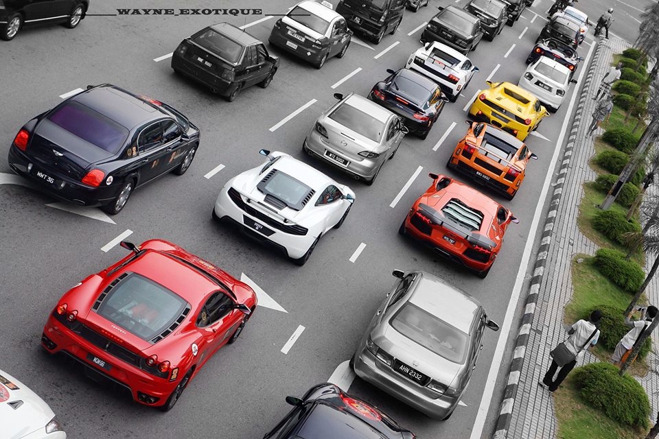 | Dàn siêu xe làm tắc nghẽn đường phố Kuala Lumpur, Malaysia. |