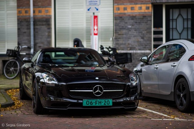 Mercedes-Benz SLS AMG Electric Drive ở Amsterdam (Hà Lan). Siêu xe có giá bán 416.600 euro, được trang bị động cơ với 4 mô-tơ điện, sản sinh công suất tối đa 740 mã lực, cho khả năng tăng tốc 0-100 km/h trong 3,9 giây.