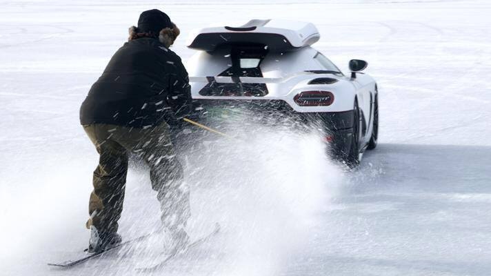 | Siêu xe Koenigsegg Agera R trở thành một công cụ hỗ trợ trượt tuyết. Siêu xe này được trang bị động cơ V8 tăng áp kép, dung tích 5,0 lít, mang lại sức mạnh 940 mã lực tại 6.900 vòng/phút và mô-men xoắn cực đại 1.100 Nm tại 4.000 vòng/phút, có khả năng tăng tốc từ 0-100 km/h trong 2,9 giây. |