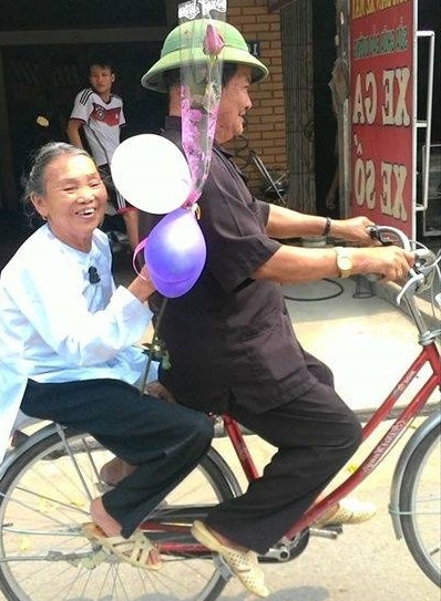 | Một cặp đôi lớn tuổi chở nhau trên chiếc xe đạp, phía sau cụ bà cầm hoa hồng, bong bóng và nở nụ cười hạnh phúc. Khoảnh khắc được diễn đàn có 6 triệu thành viên đăng tải nhanh chóng sở hữu 250.000 like (thích). Đa số dân mạng đều tỏ ra ngưỡng mộ sự chung thủy của họ, xem đó là động lực, dẹp bỏ lợi ích cá nhân, cái tôi của mình để sống tốt, cho và nhận yêu thương nhiều hơn. Ảnh: G.T.G.