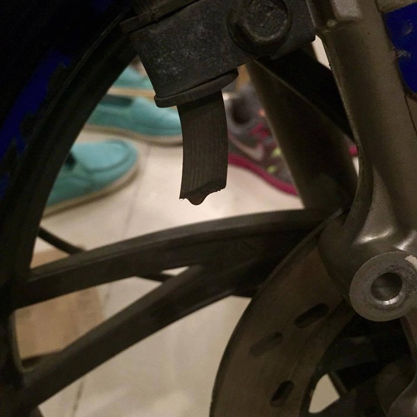 | Gửi xe và bị cắt mất heo dầu, cô gái có tên S.T chia sẻ lên diễn đàn mạng để mọi người cảnh giác. Cô viết: "Mình vừa đi tiễn bạn về, ra khỏi bãi xe được khoảng 2 km thì phát hiện mất thắng trước, quay lại yêu cầu bảo vệ cho xem camera thì họ bảo chỉ trong nhà có chứ không gắn giám sát bên ngoài". Sự việc nhận được gần 8.000 lượt xem từ dân mạng. Ảnh: S.T. |