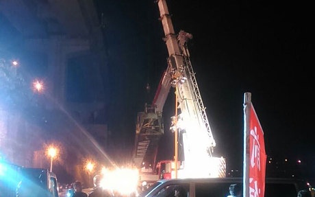| Hai cần cẩu lớn được đưa tới hiện trường để hỗ trợ công tác cứu nạn phi cơ TransAsia Airways. |