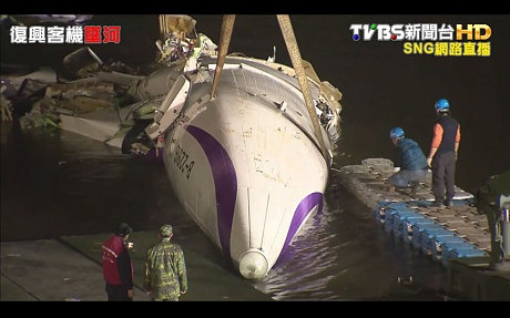 | Giới chức Đài Loan sẽ tiếp tục trục vớt phần thân trước của máy bay, nơi có buồng lái của phi công. Tuy nhiên, do phần thân này bị chìm gần như hoàn toàn dưới nước nên sẽ mất nhiều thời gian để trục vớt. |