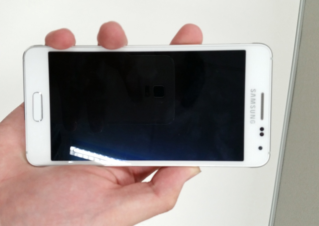 | Độ mỏng rất ấn tượng của Galaxy Alpha. Không loại trừ khả năng, model này sẽ chỉ mỏng khoảng 7mm, tương đương với những bản mô hình iPhone 6 từng lộ diện gần đây. |