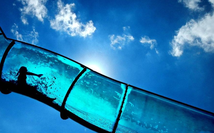| Bóng bé gái trong cầu trượt nước tại bể bơi ngoài trời. Ảnh: AFP. |