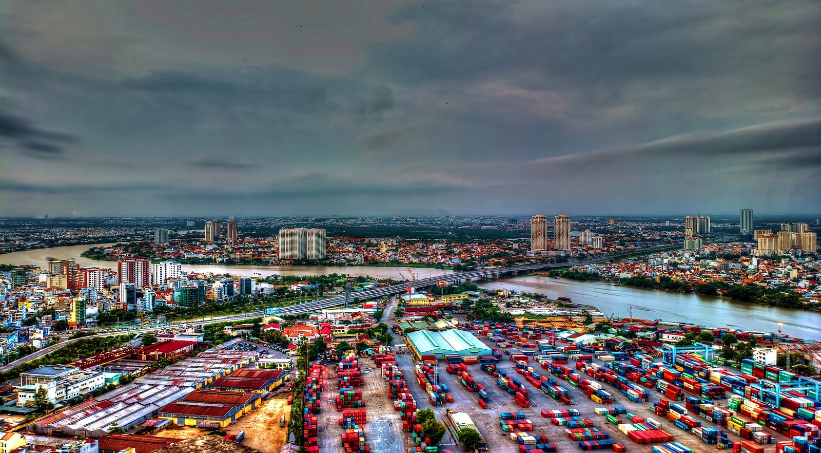 | Bức ảnh được chụp bởi Nguyễn Thành Nam, từ cầu Thủ Thiêm. Ảnh chụp với ISO 50, tốc độ 2,7 giây. |