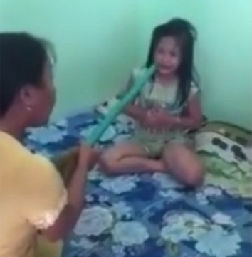 Trên các diễn đàn hiện lan tỏa clip quay lại cảnh người mẹ đánh con dã man. Theo đó, bà mẹ liên tục dùng tay, chổi đánh vào mặt đứa trẻ, mặc cho cô bé la khóc. Sự việc khiến nhiều người bất bình về cách dạy con cái bằng bạo lực của vị phụ huynh này. Ảnh cắt từ clip.