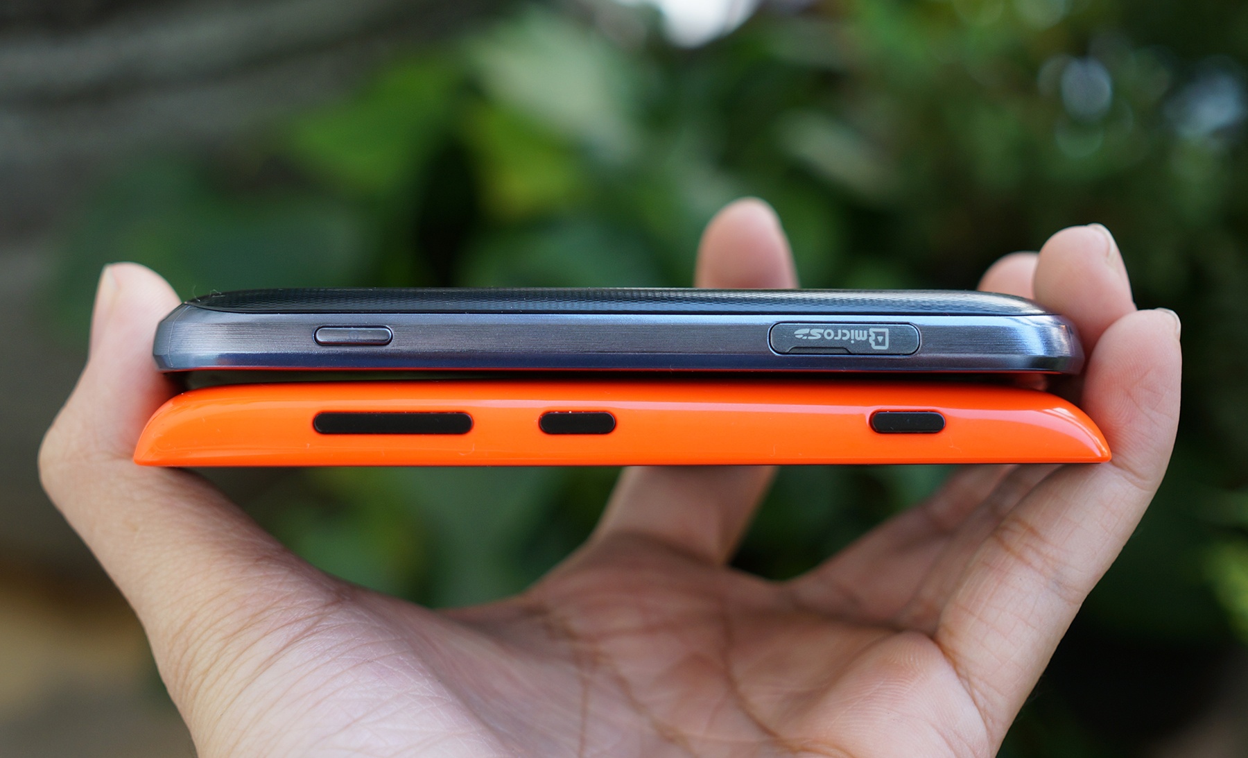 | Độ dày của hai mẫu máy này khá tương đương nhau, Trend Plus chỉ dày hơn Lumia 525 0,5 mm. |