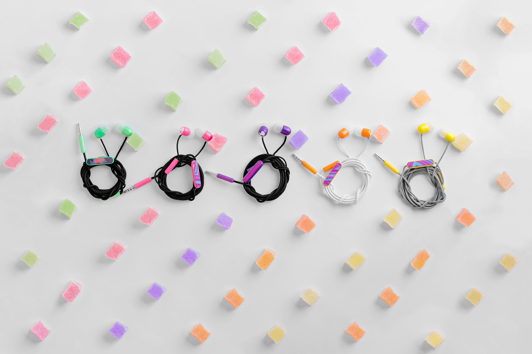 | Phần phím tăng giảm âm lượng và nhận được gọi được bọc vải, giúp cho cảm giác bấm êm và mềm hơn so với tai nghe thông thường. Khác với Jelly Ear và Jelly Galaxy, Jelly Doux không còn sử dụng dây tết xoắn mà dùng dây bọc vải. |