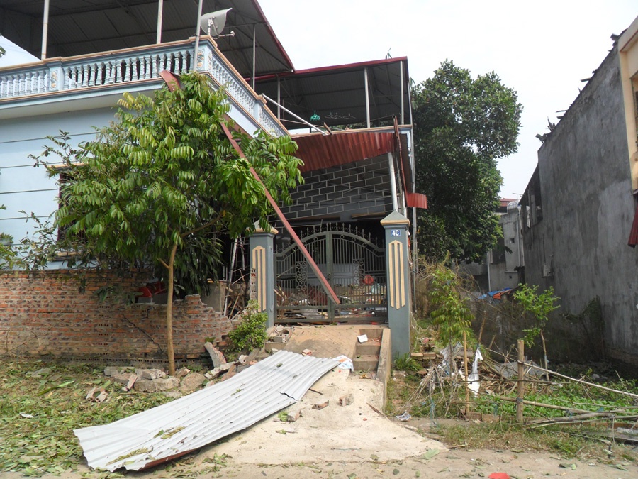 | Một ngôi nhà gần cổng nhà kho thuốc pháo hoa cũng hư hại nặng. |