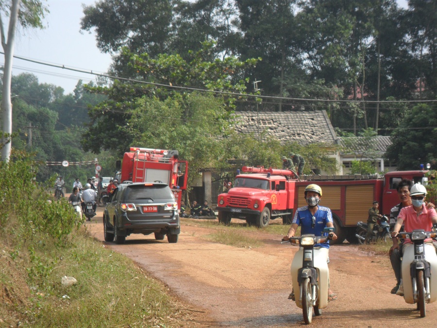 | Lực lượng xe cứu hỏa vẫn túc trực tại hiện trường. |