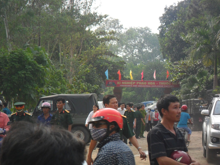 | Rất đông người dân hiếu kỳ tụ tập quanh xí nghiệp pháo hoa- thuốc nổ sau khi vụ việc xảy ra. |