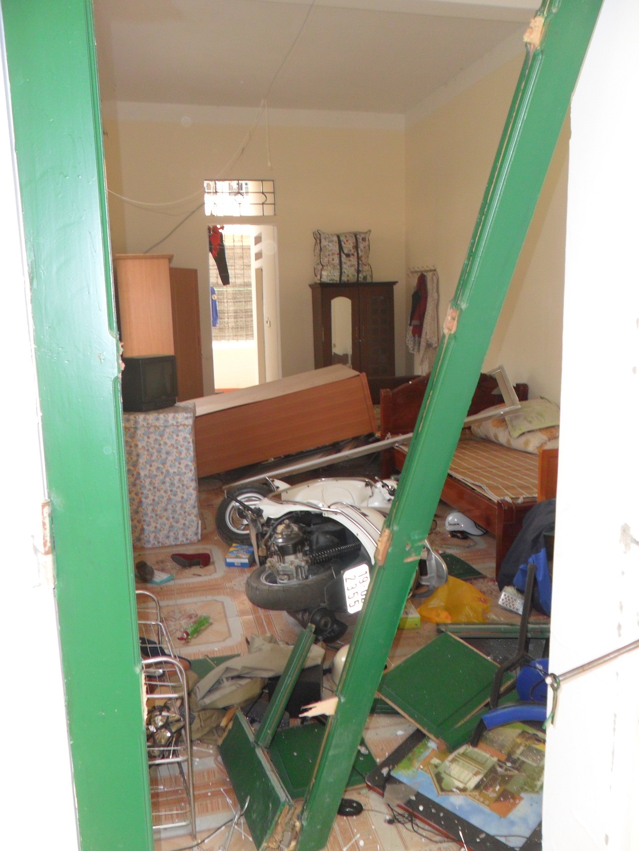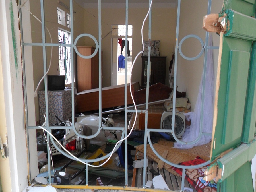 | Cảnh tượng đổ nát tan hoang phía trong một phòng của khu nhà tập thể |