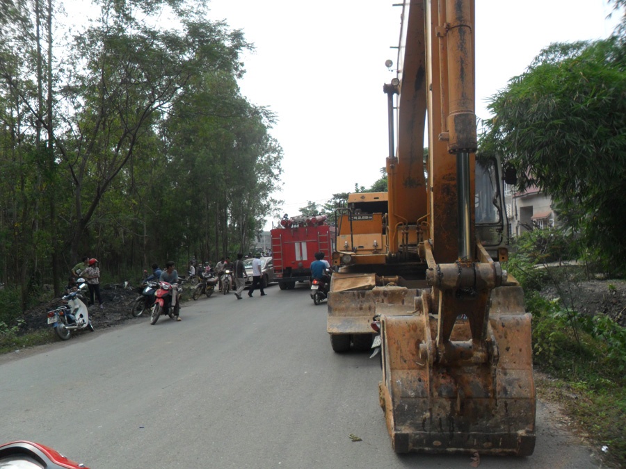 | Xe cứu hỏa, máy thi công được điều động đến nơi xảy ra vụ việc để cứu nạn. |