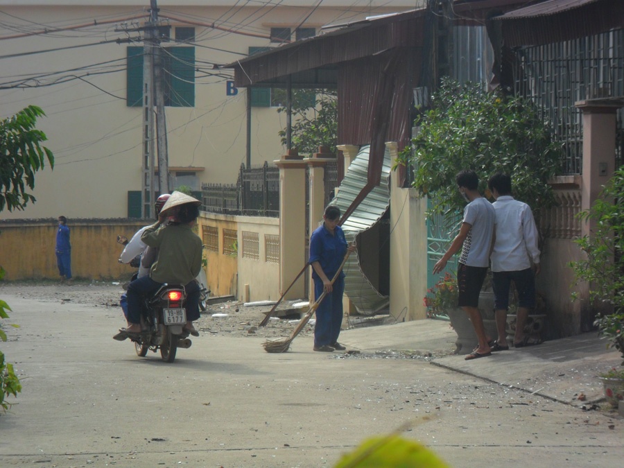 | Dọn dẹp đường sau khi vụ nổ xảy ra. |
