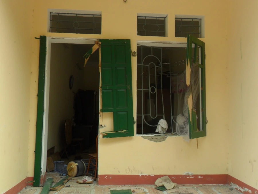 | Rất nhiều ngôi nhà bị nứt và hư hại nặng do vụ nổ. |