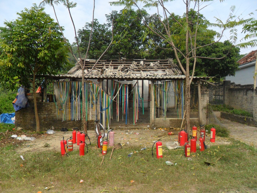 | Cảnh đổ nát phía bên trong kho thuốc pháo hoa. |