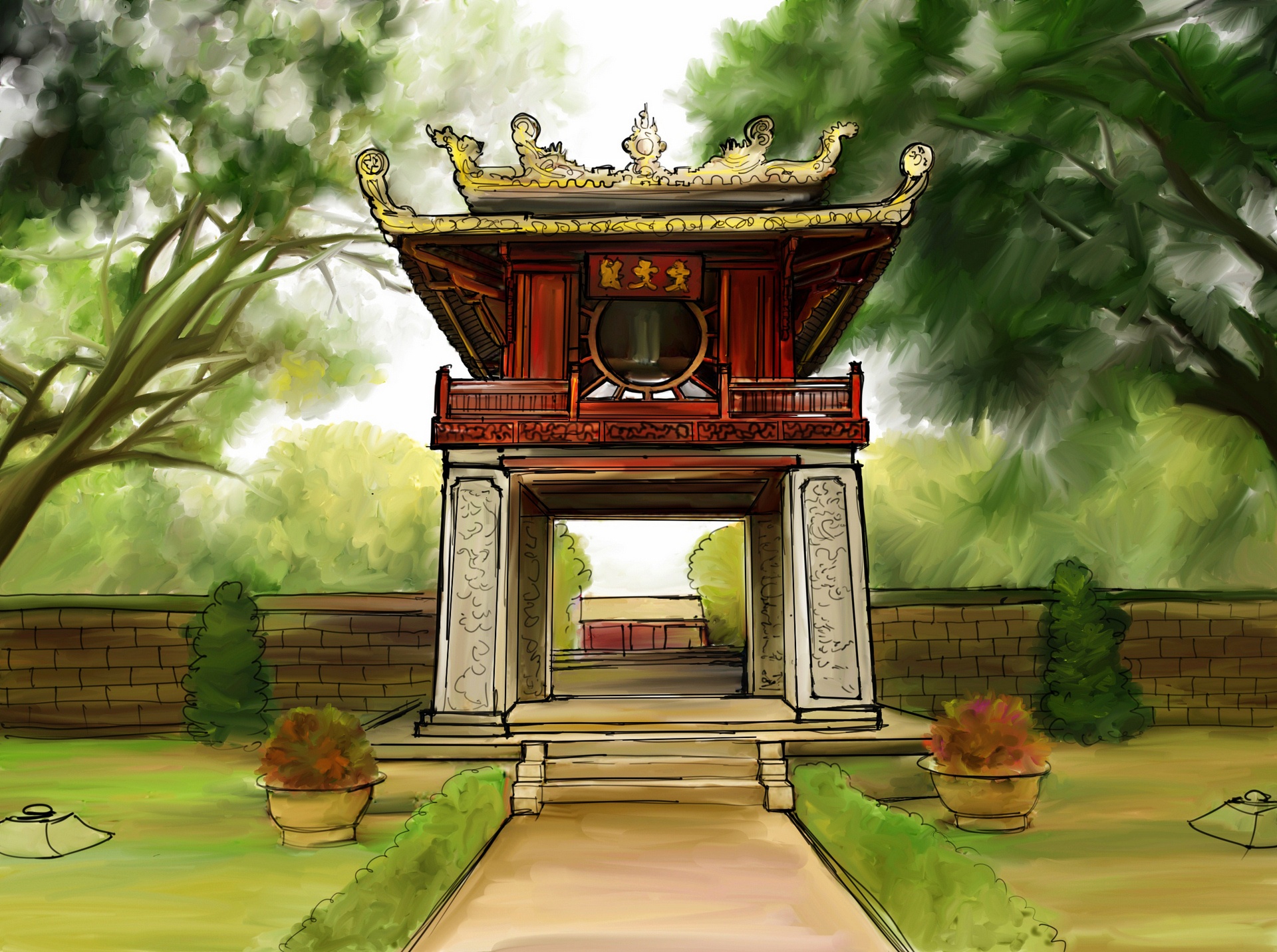 | Hình ảnh Khuê Văn Các trong Văn Miếu Quốc Tử Giám với những nét phác thảo nhanh.