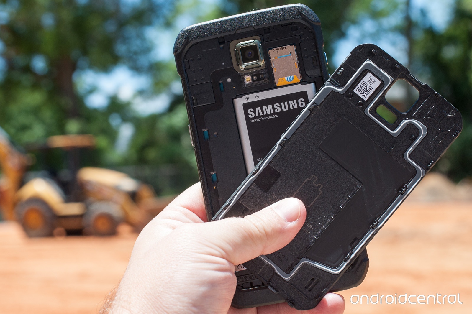 Là một sản phẩm nồi đồng cối đá nhưng S5 Active vẫn dùng pin tháo rời. Pin này có kích thước giống hệt pin của S5 (dung lượng 2.800 mAh). Người dùng có thể thay 2 loại pin này cho nhau. Máy cũng có khe cắm thẻ nhớ microSD.
