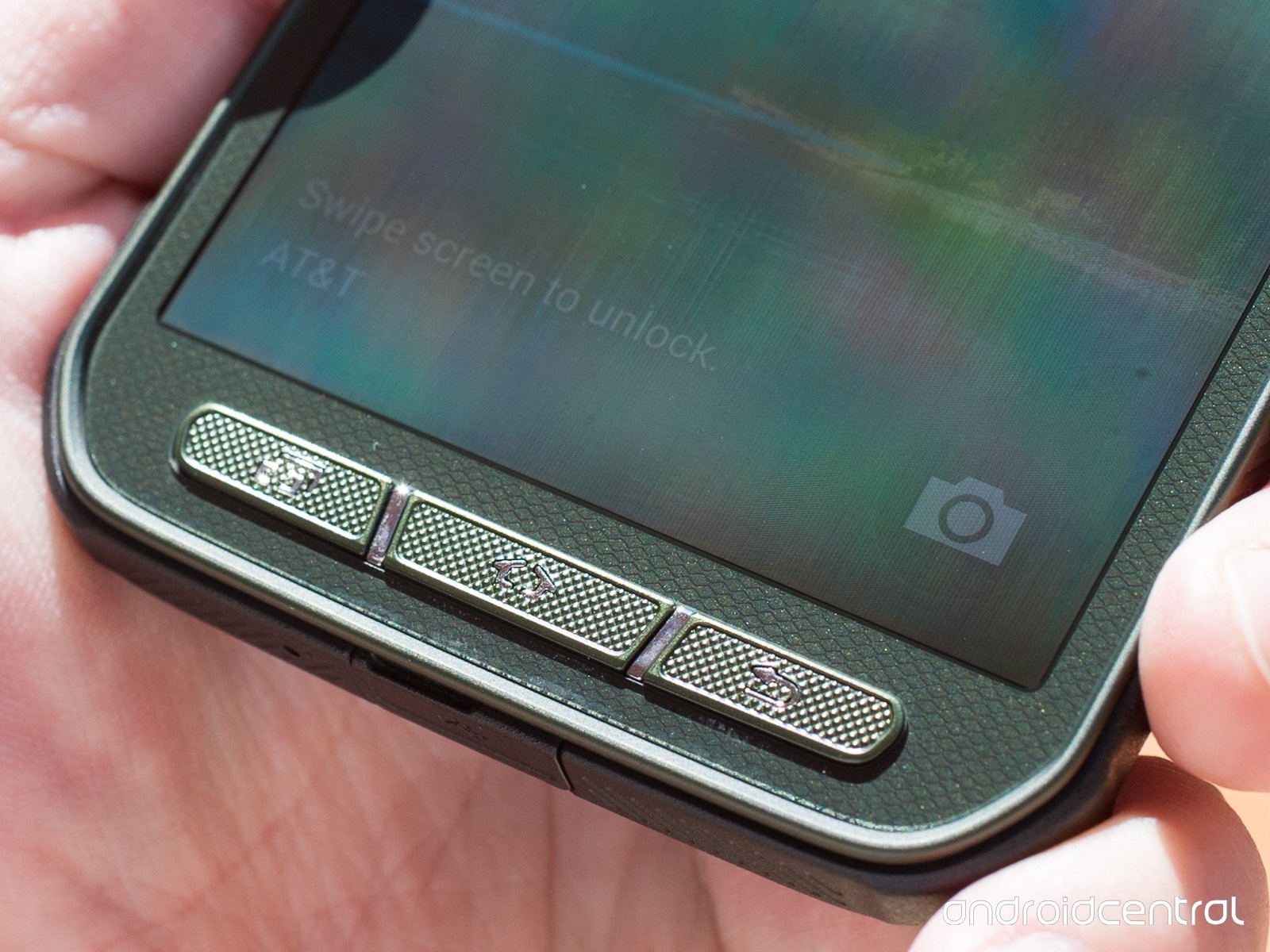 | Điểm mới của Galaxy S5 Active chính là phím màu xanh bên cạnh phím tăng giảm âm lượng. Nó được gọi là Active Key. |
