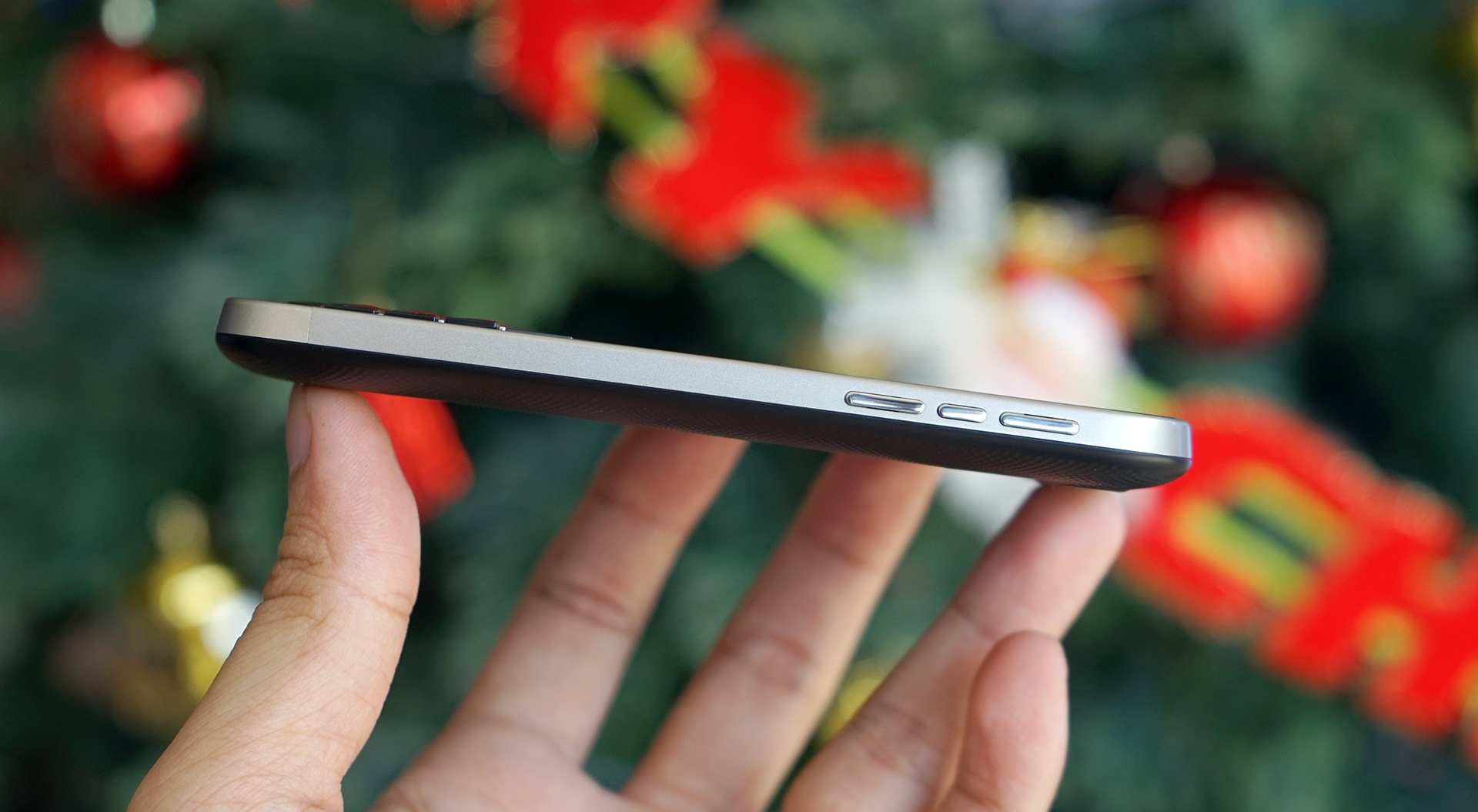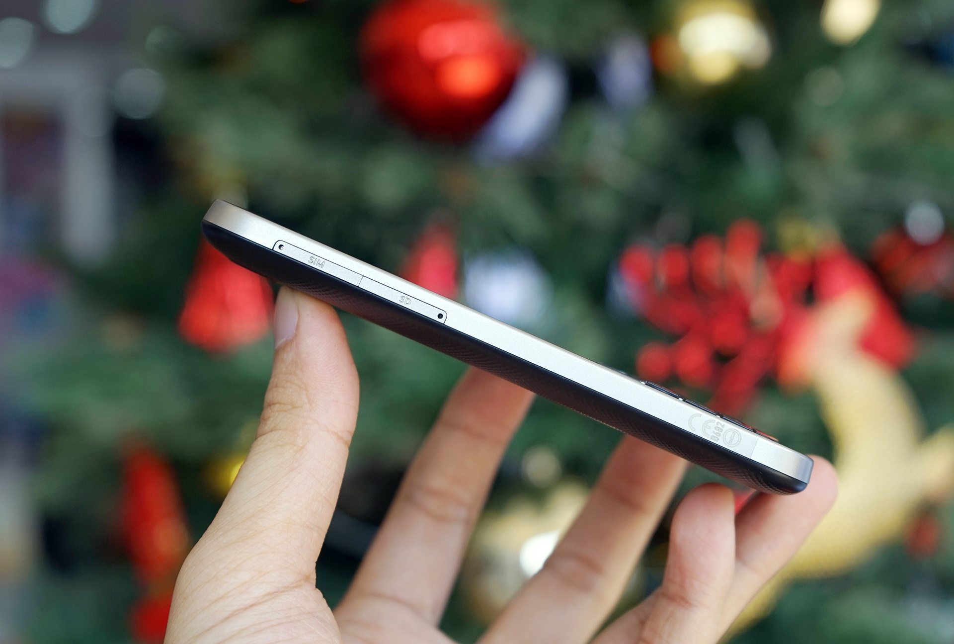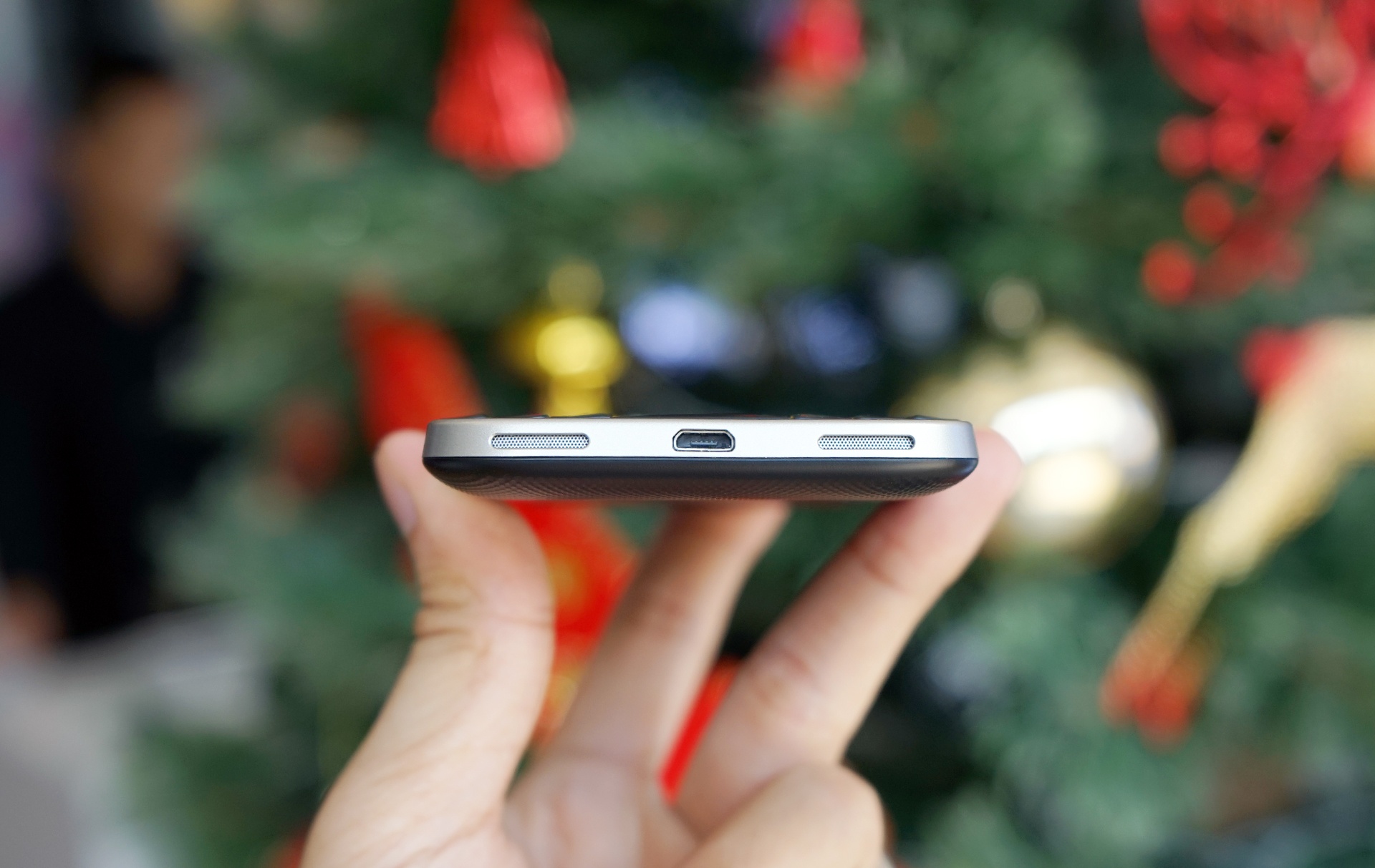 | Máy được bao quanh bởi đường viền kim loại. Hai dải loa kép ở cạnh dưới. |