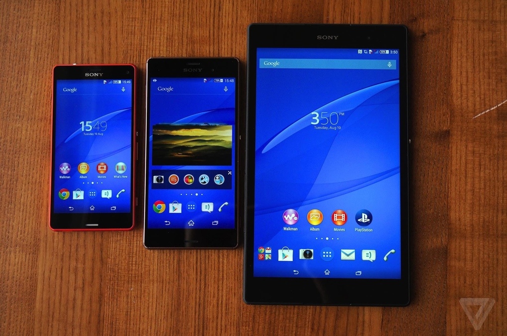 Từ trái qua phải: Xperia Z3 Compact, Xperia Z3 và máy tính bảng Xperia Z3 Compact Tablet.