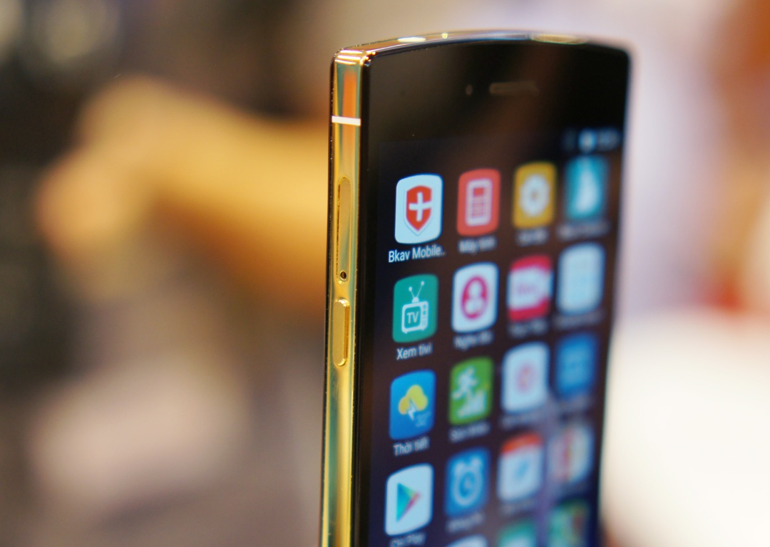 | Toàn bộ phần khung viền của máy mạ vàng 24K. Bkav không tiết lộ đơn vị nào chế tác cho sản phẩm. |