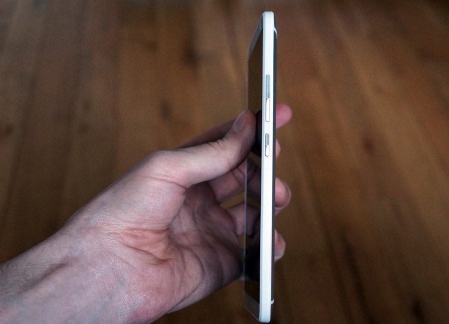 Cạnh phải của máy là nơi đặt nút nguồn và tăng giảm âm lượng. Trước đó, HTC One và One mini đều dùng phím nguồn đặt trên đỉnh đầu, tạo cảm giác khá khó chịu cho người dùng khi bấm.