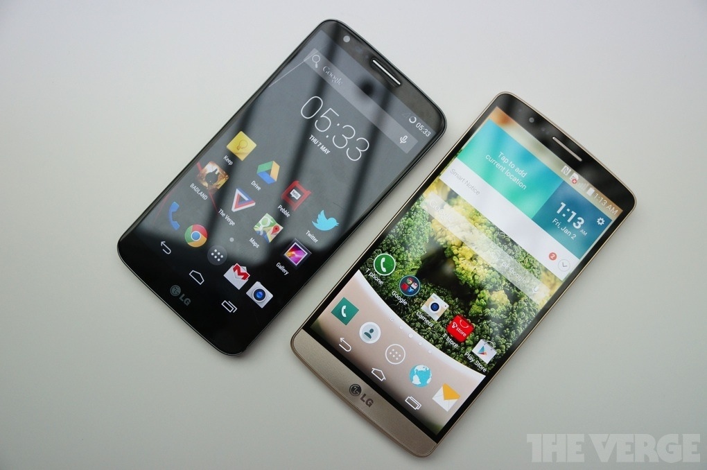 | LG G3 so dáng cùng iPhone 5 và HTC One M8. |