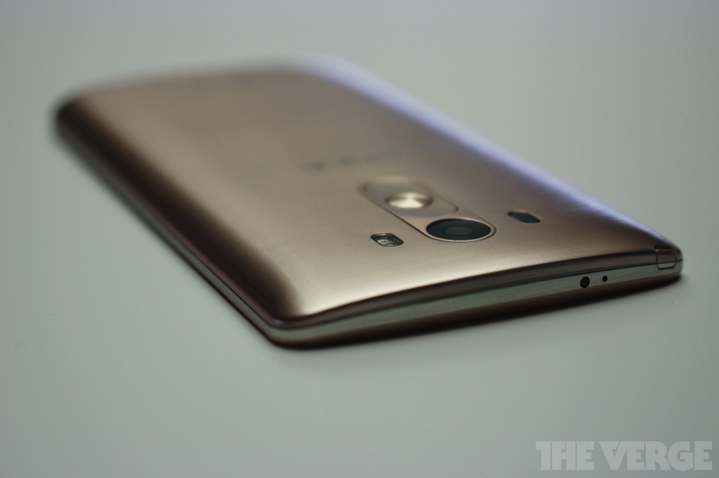 | LG G3 có mặt lưng vát cong. Máy trông khá mỏng và cứng cáp. Các chi tiết và đường nét liền lạc, đạt độ tinh xảo cao. |