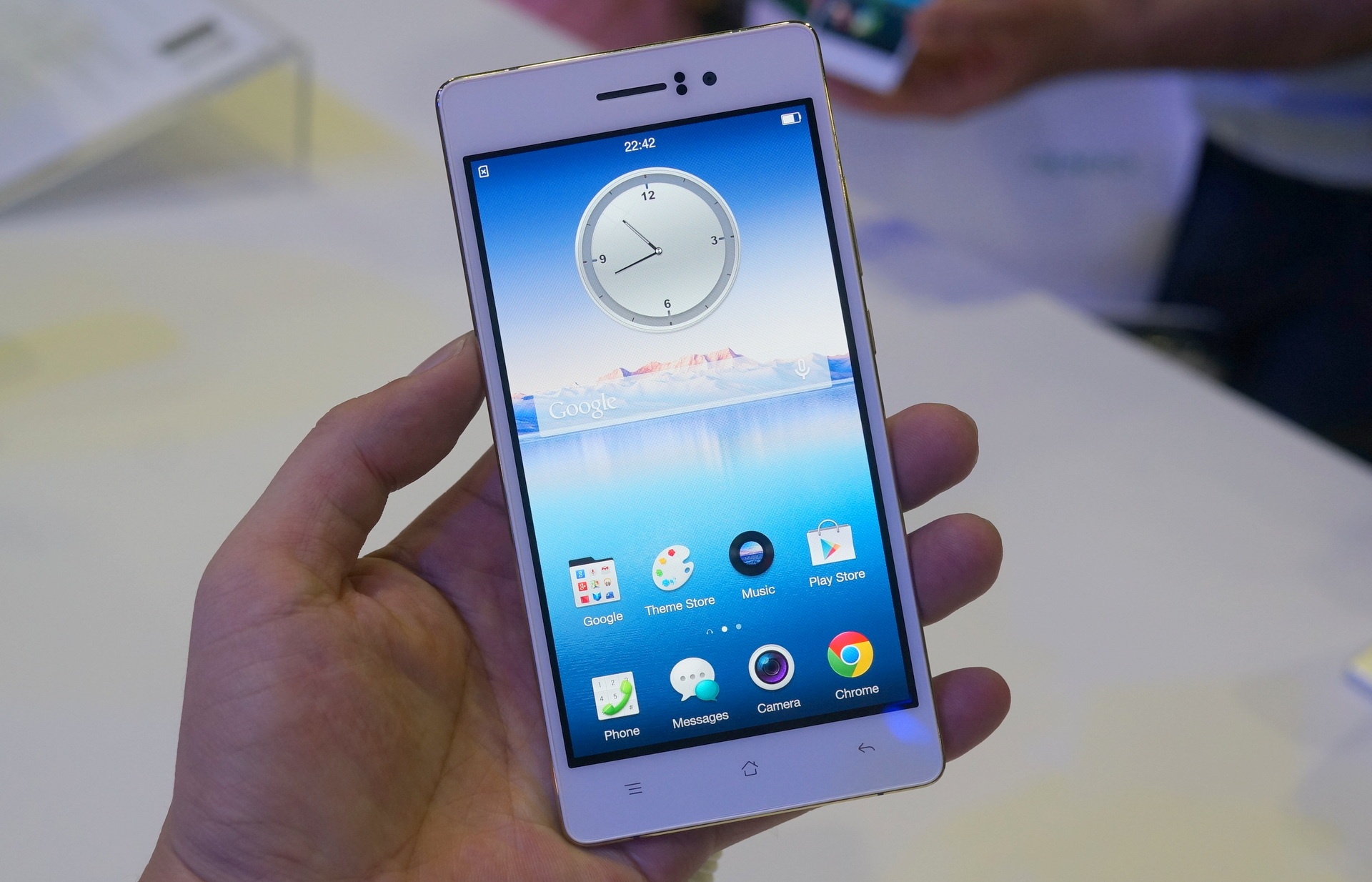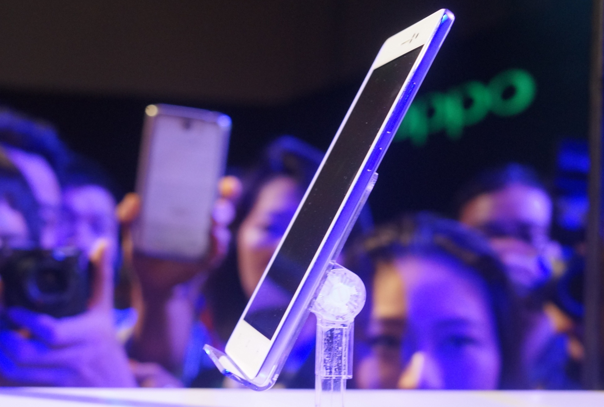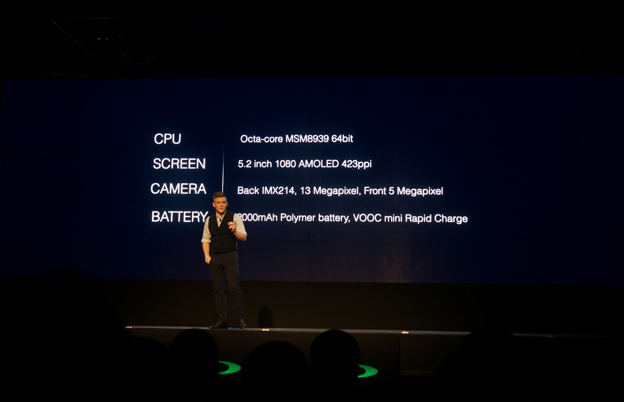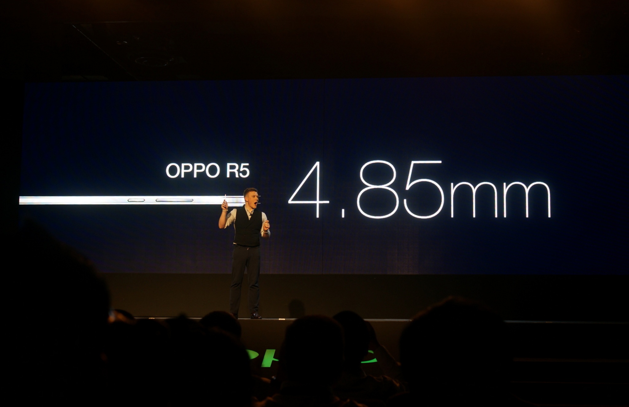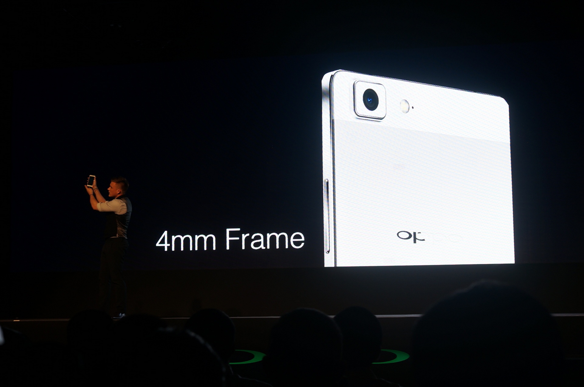 Đông đảo khách mời trong sự kiện Oppo tại Singapore đã ồ lên kinh ngạc khi hãng này công bố độ mỏng chưa tới 5 mm cho một chiếc smartphone. Mức này đã đánh bại Gionee Elife S5.5, một chiếc smartphone cũng đến từ Trung Quốc mỏng 5,5 mm.