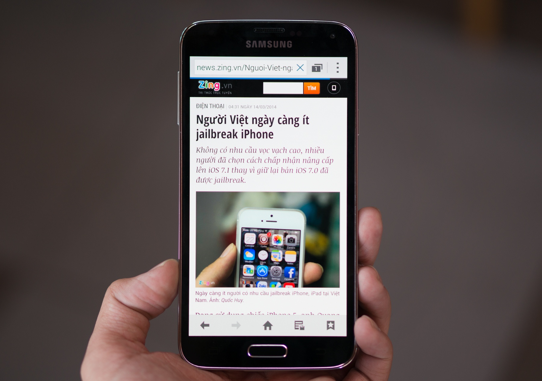| Màn hình 5,1 inch của Galaxy S5 mang lại trải nghiệm duyệt web khá tốt. Tuy nhiên, màu sắc chưa thực sự tươi tắn và có phần ám vàng khi hiển thị màu trắng. |