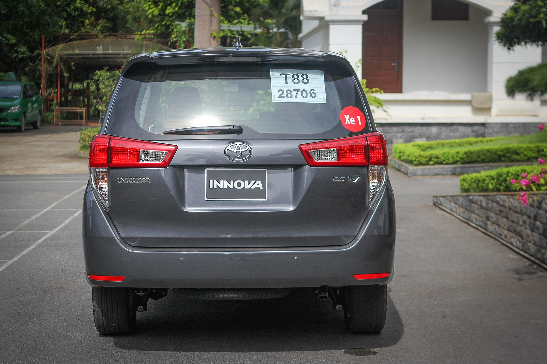 | Thiết kế đuôi xe theo phong cách mới. Cụm đèn hậu nằm ngang kết hợp cùng những đường nét dập nổi, mang đến cảm giác cứng cáp khi nhìn từ phía sau. Kích thước của Innova 2.0V dài, rộng, cao lần lượt 4.375 mm, 1.830 mm, 1.795 mm. Trục cơ sở xe ở mức 2.750 mm. Khoảng sáng gầm xe 178 mm. |