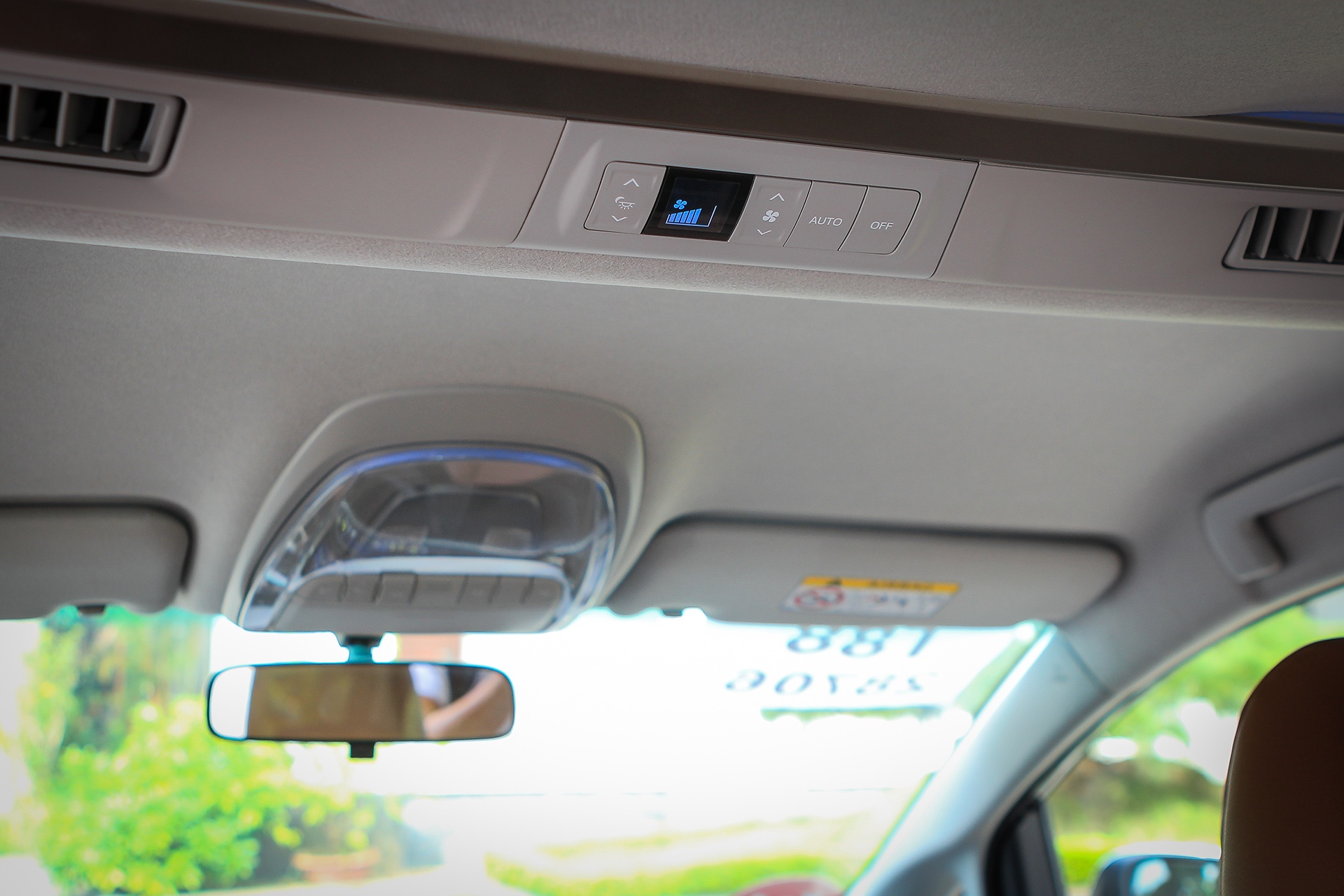 | Khu vực điều chỉnh gió điều hòa cho hàng ghế thứ 2. Ngoài ra, Innova 2.0V 2016 còn được trang bị một số tiện ích khác như ngăn làm mát, cổng sạc điện thoại, đèn LED đường viền màu xanh dương trên trần xe. |
