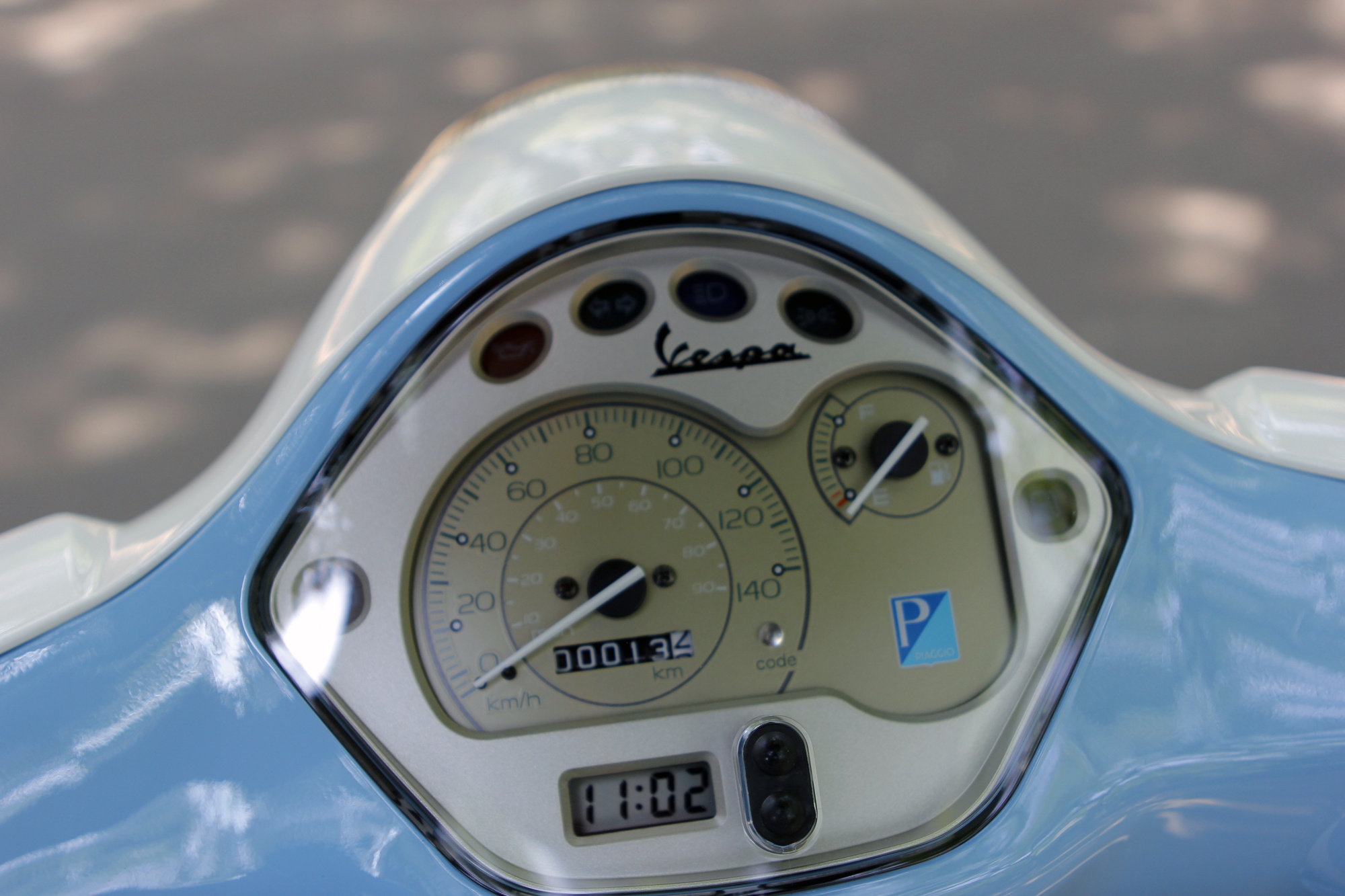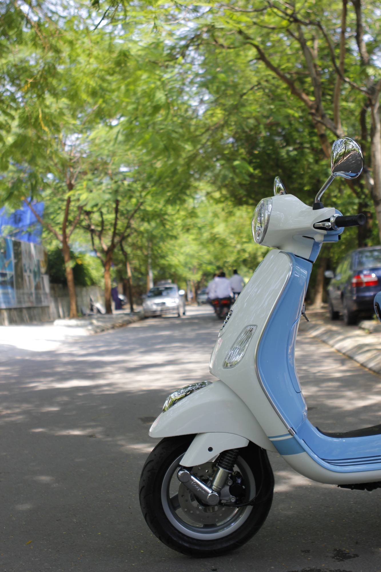 Sự kết hợp hài hòa giữa 2 tông màu xanh - trắng mang lại cho Vespa bi-color vẻ đẹp trẻ trung, phá cách so với những chiếc Vespa LX thông thường.