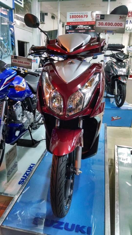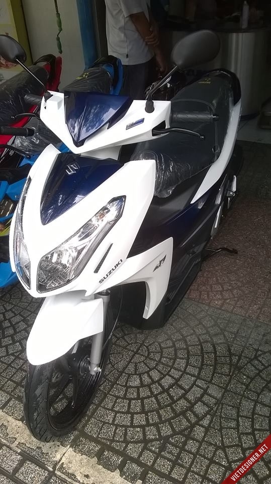 | Mẫu xe tay ga mới của Suzuki Việt Nam có 3 màu là xanh-trắng, đỏ-đen và đỏ-bạc. |