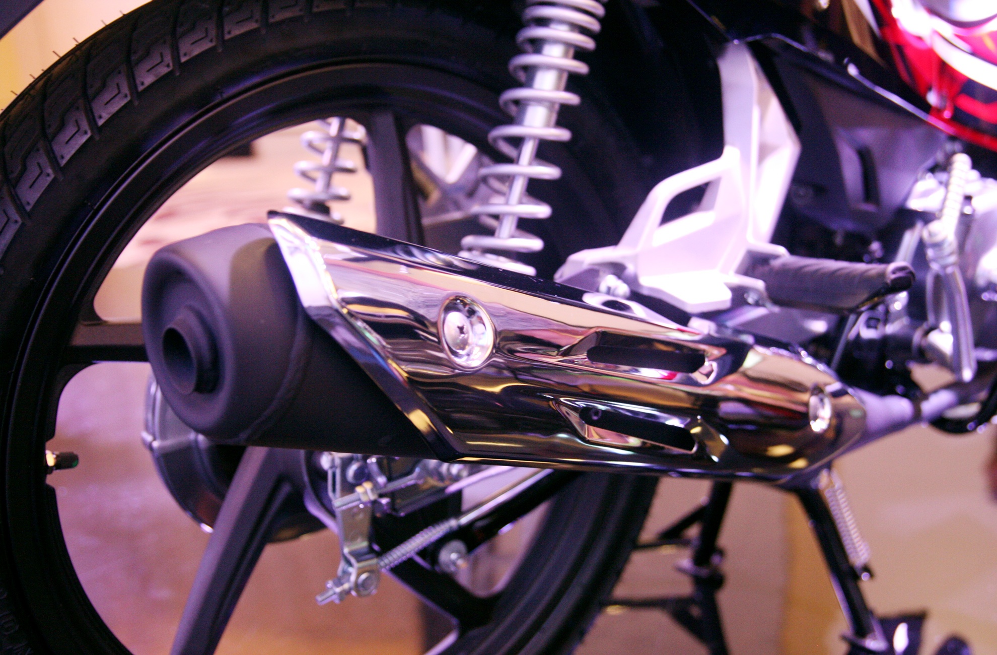 | Ống xả với miếng ốp bảo vệ bóng bảy. |