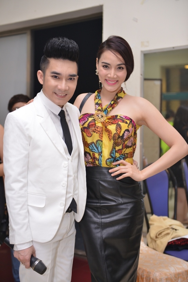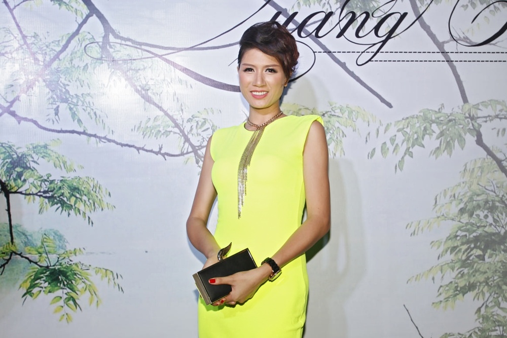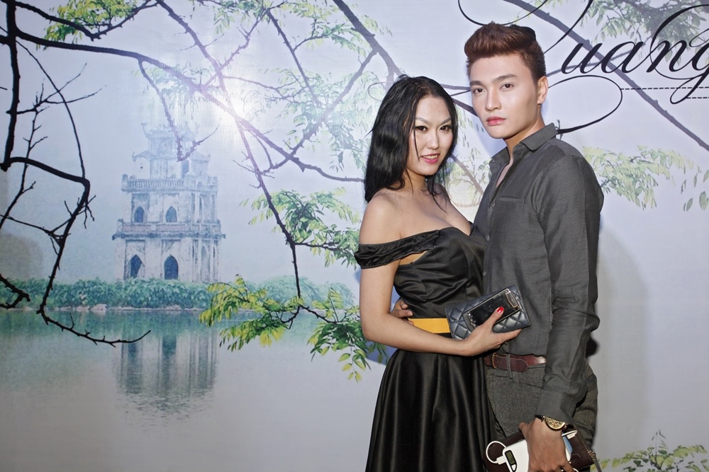| Người mẫu Trang Nhung đến chúc mừng Quang Hà. |