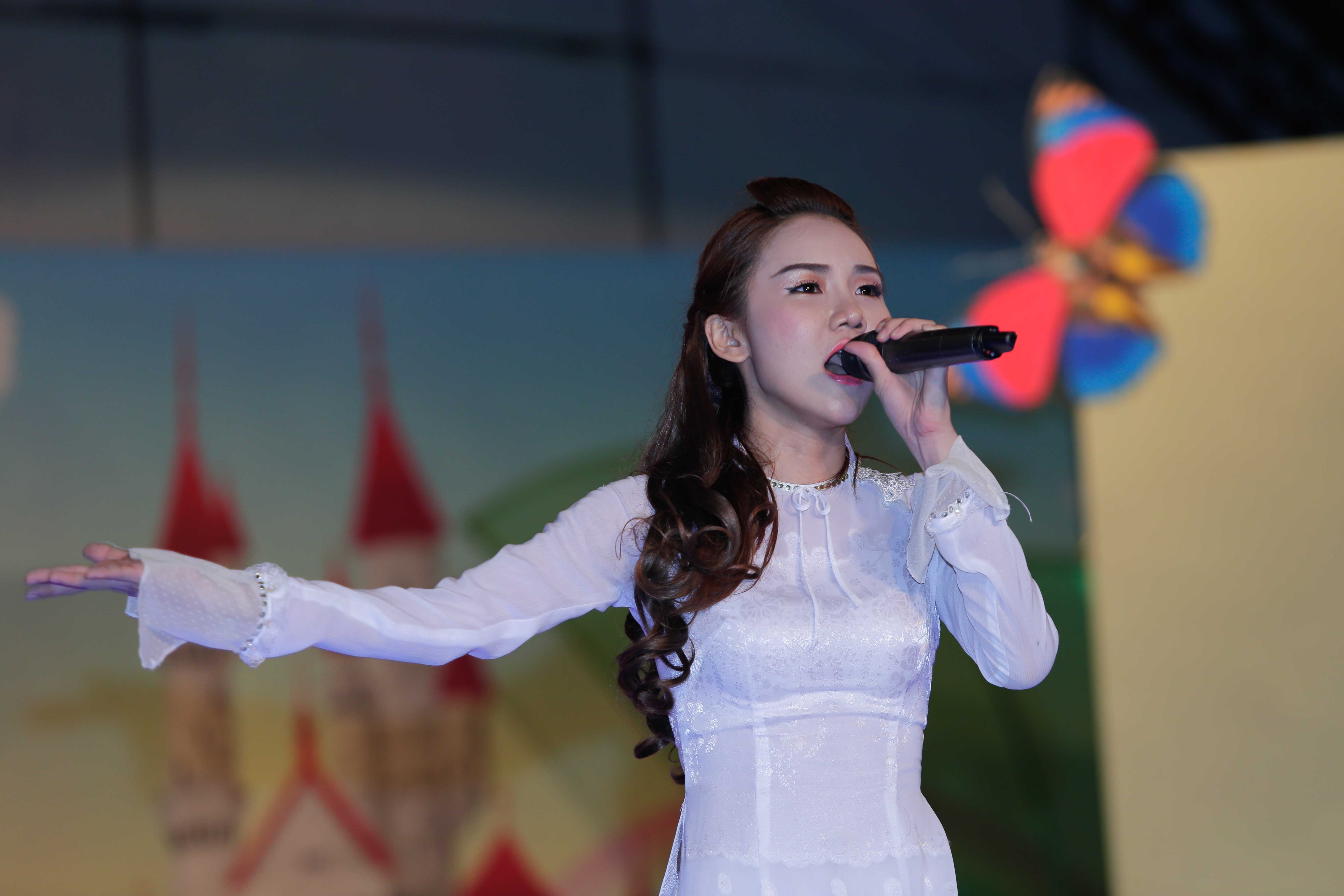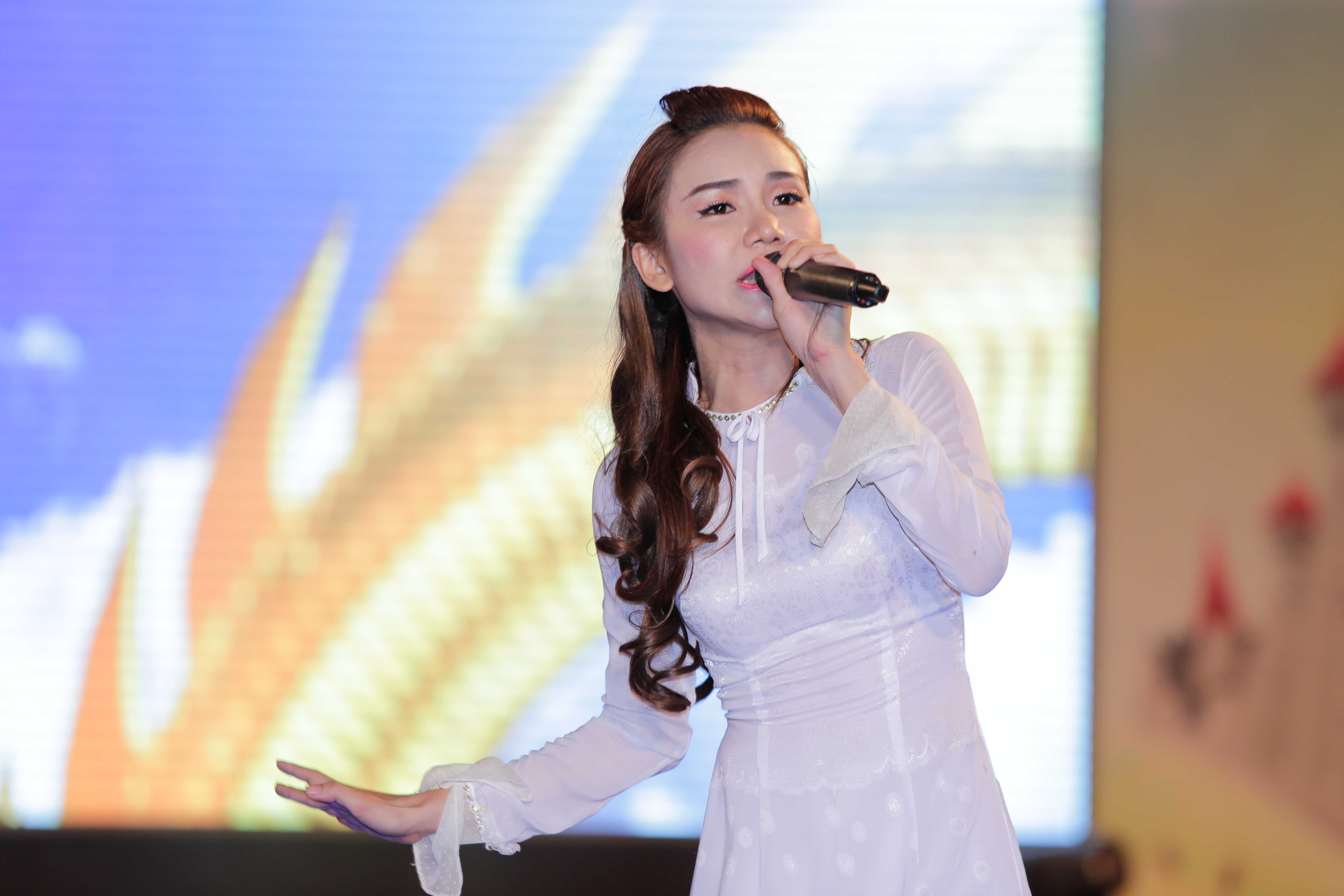 Với bản lĩnh nhiều năm đứng trên sân khấu, cô tự tin, bình tĩnh thể hiện sáng tác mới của mình.