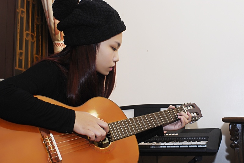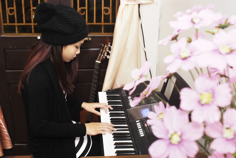 | Mỗi khi rảnh, Thảo My thường ở nhà tự học đàn. |