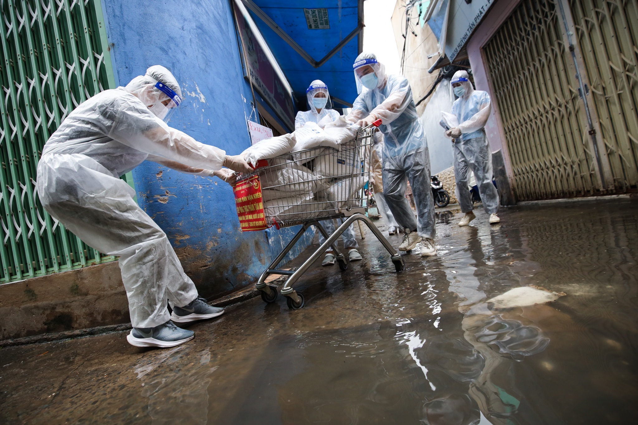 Đội thiện nguyện len lỏi khắp các tuyến phố, con hẻm, hỗ trợ những gia đình khó khăn mai táng người mất vì Covid-19. Ảnh: Duy Hiệu.